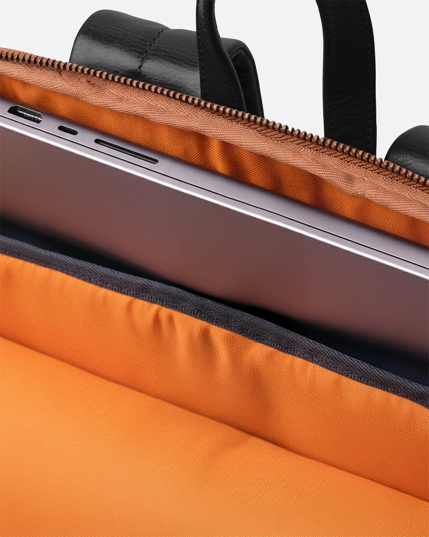 Effortlessly carry essentials with the Soho Urbanist Slim Backpack. Designed for urban life, it comfortably fits up to a 16-inch MacBook Pro. Its full-grain leather craftsmanship combines compactness and spaciousness. Comes with a two-year warranty.